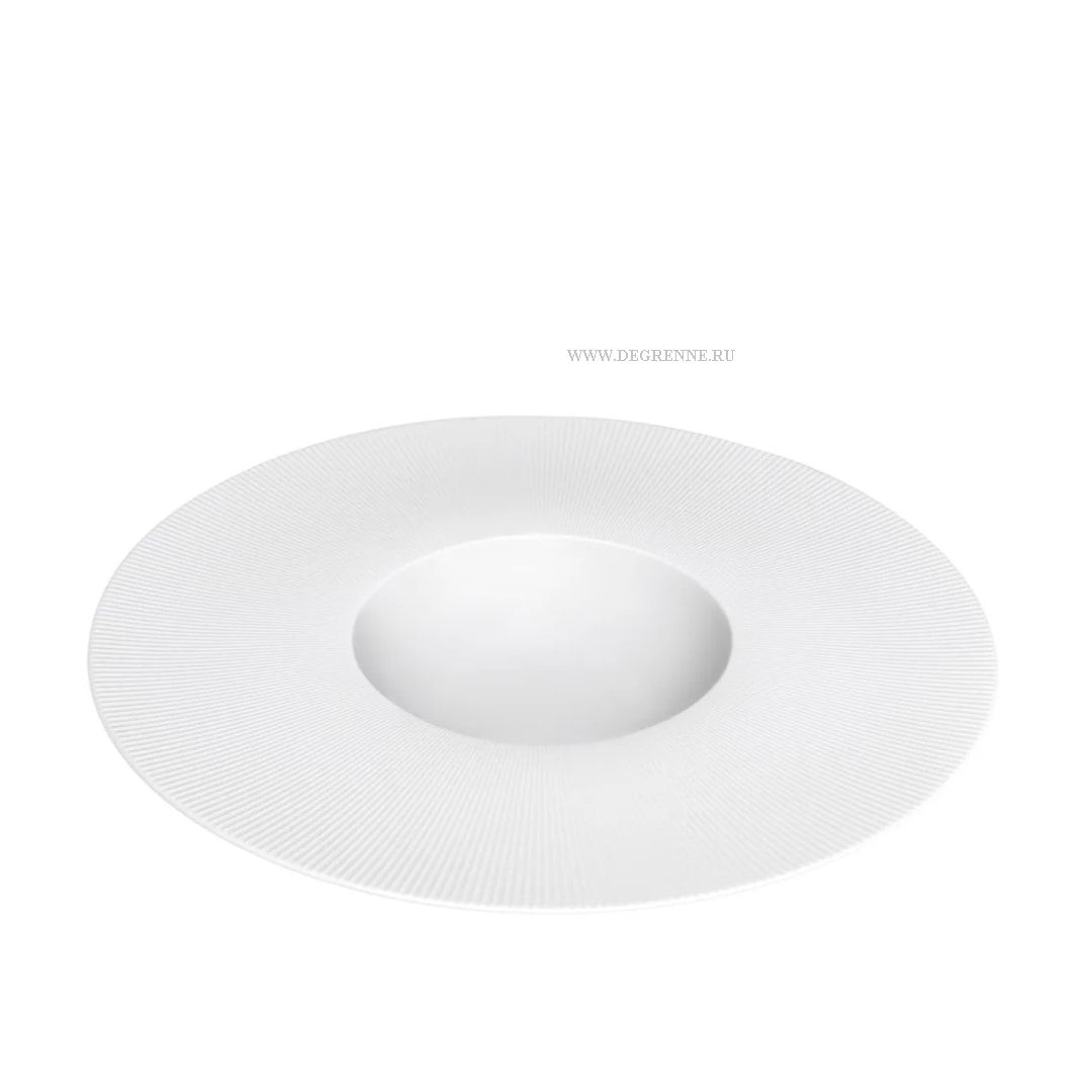 Элегантная сервировочная тарелка 32 см L RAYON из лиможского фарфора украшена рельефным узором в виде лучей. Тонкий контраст матовости и блеска придает изысканность любому кулинарному шедевру.